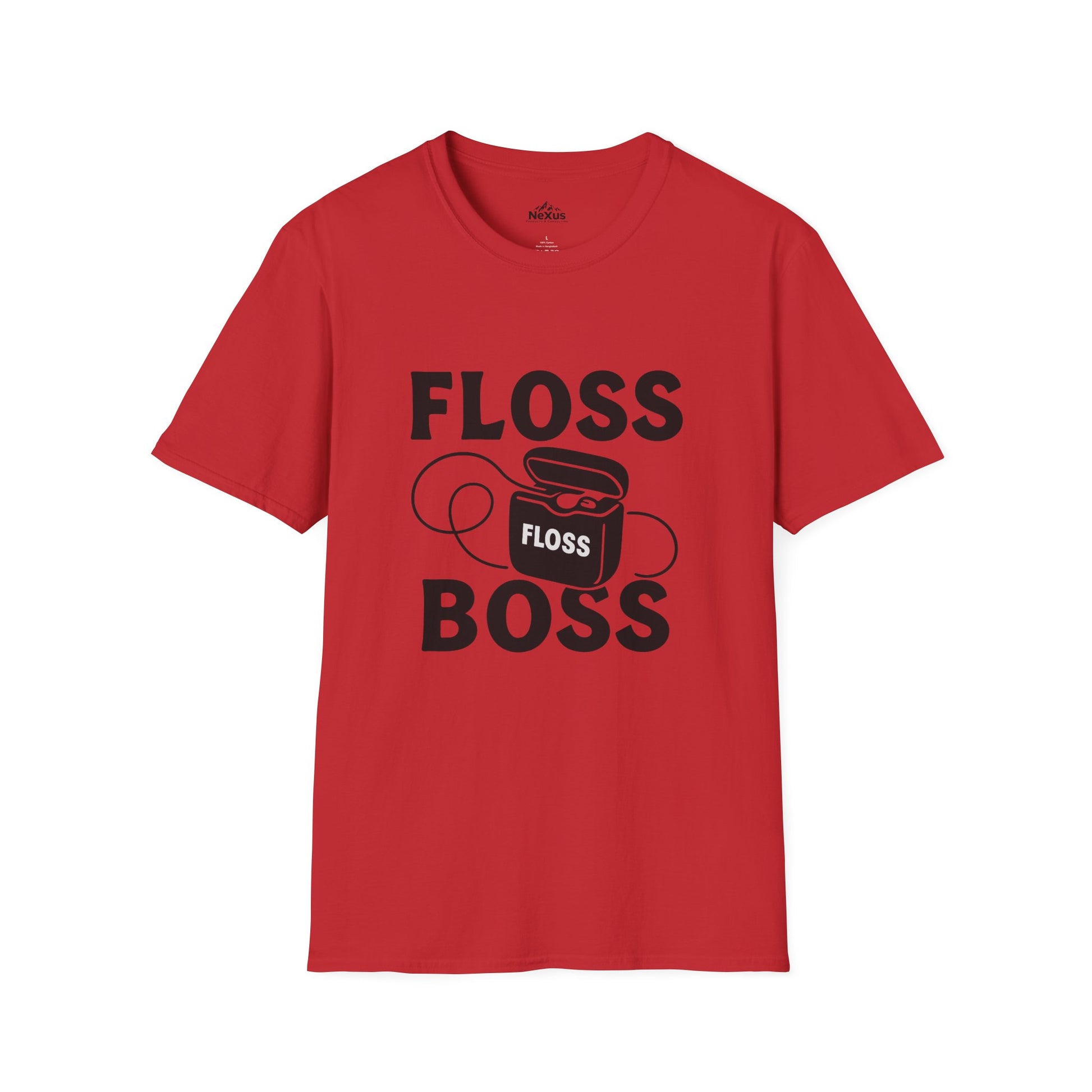 Introducing this stylish Unisex Softstyle T-Shirt that radiates a fun vibe with its bold 'Floss Boss' graphic. Perfect for anyone who loves to showcase their personality, this tee complements casual outings or festive gatherings. It's an ideal gift for dental hygienists or anyone passionate about oral health, making it a great choice for occasions like National Dental Hygiene Month or just casual everyday wear. Feel confident and comfortable in soft, breathable cotton fabric that transitions seamlessly from day to night, embodying an effortless casual charm.